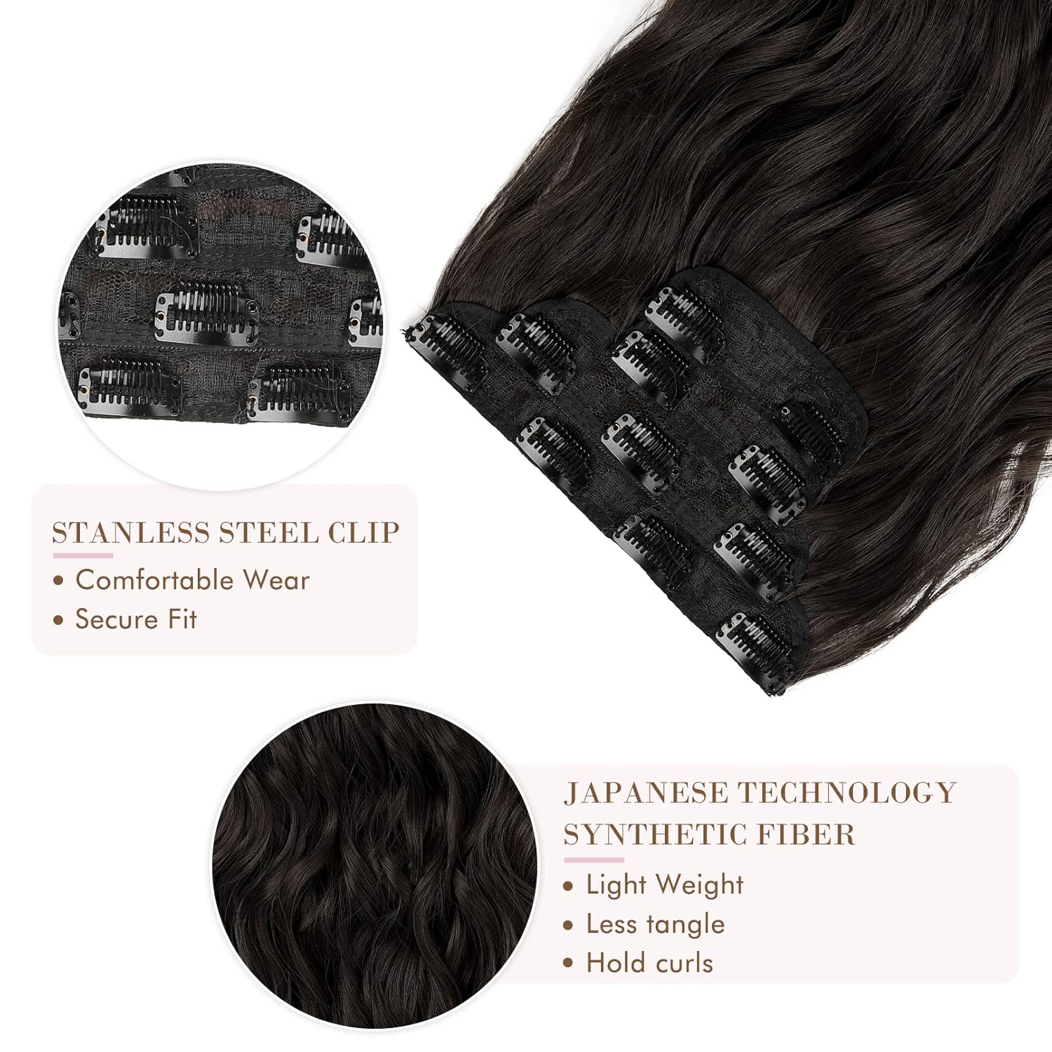 ✨ [Natural, Lightweight, Luxurious] Superior Japanese know-how HYOUITSU heat-friendly artificial fibers, intently resemble actual human hair each in feel and look. Get pleasure from the identical hair quantity however 30% lighter weight. Every pack comes with 4 wefts for customizable placement on skinny or thick hair: 1 x 5″ width with 4 clips, 2 x 4″ width with 3 clips, 2 x 2″ width with 2 clips; size 24”; whole weight 240g