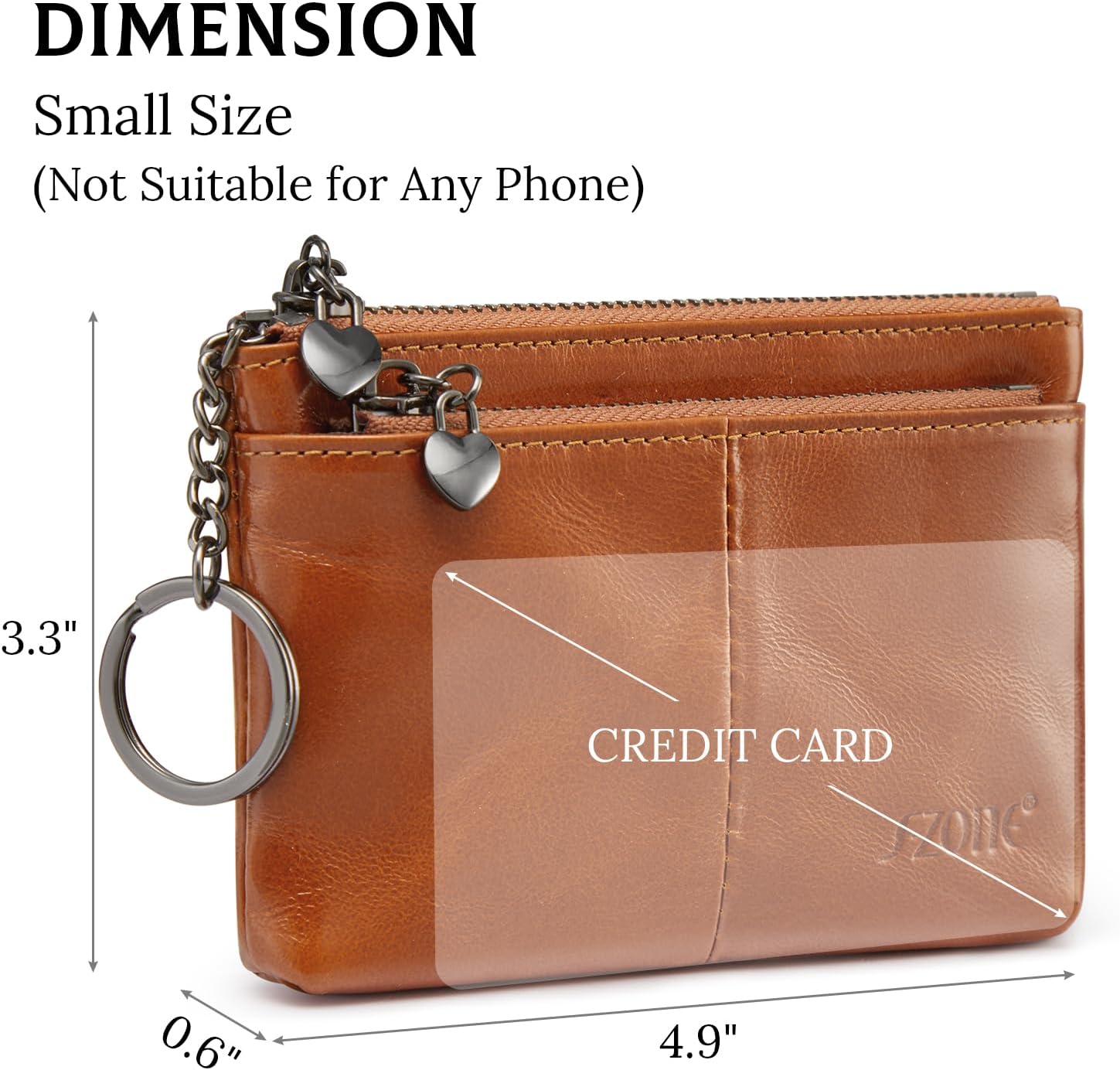 S-ZONE Leather-based Coin Purse Girls Small Change Pockets Card Holder with Keychain leather coin purseleather coin purse