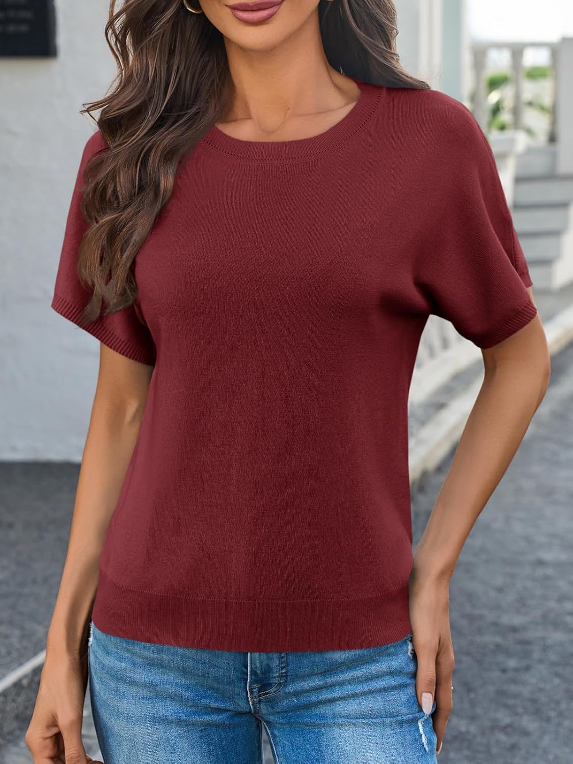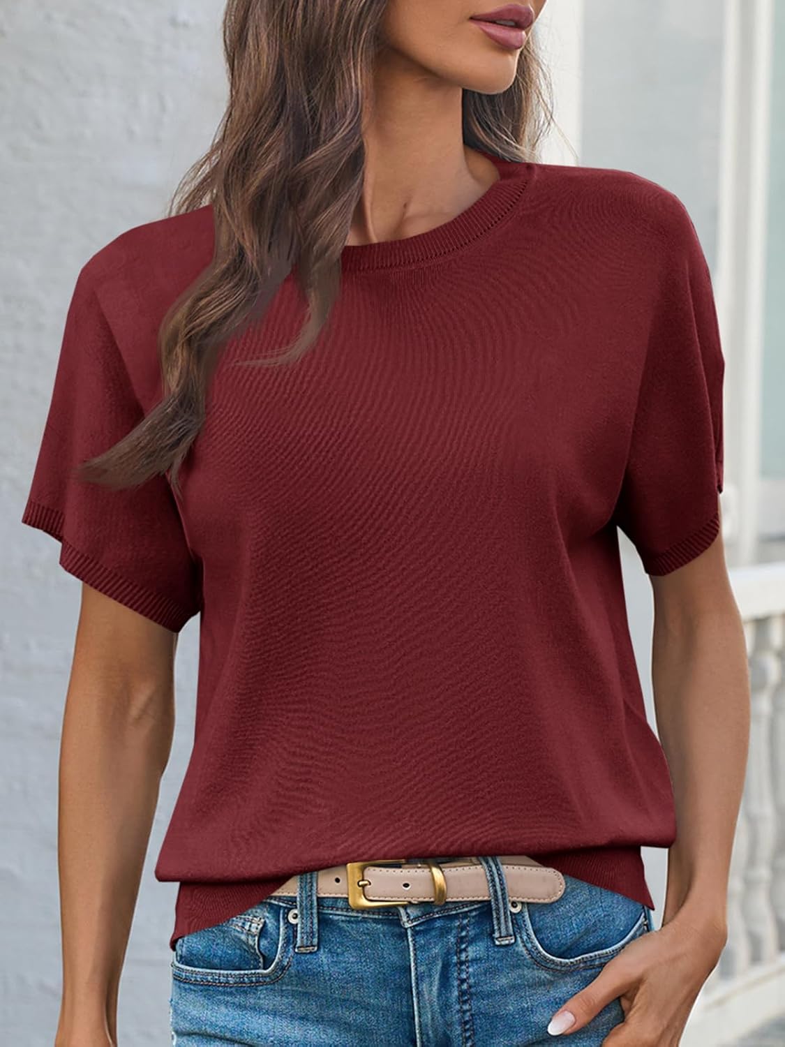 Summer season Fundamental Brief Sleeve Crew Neck Sweater Tops