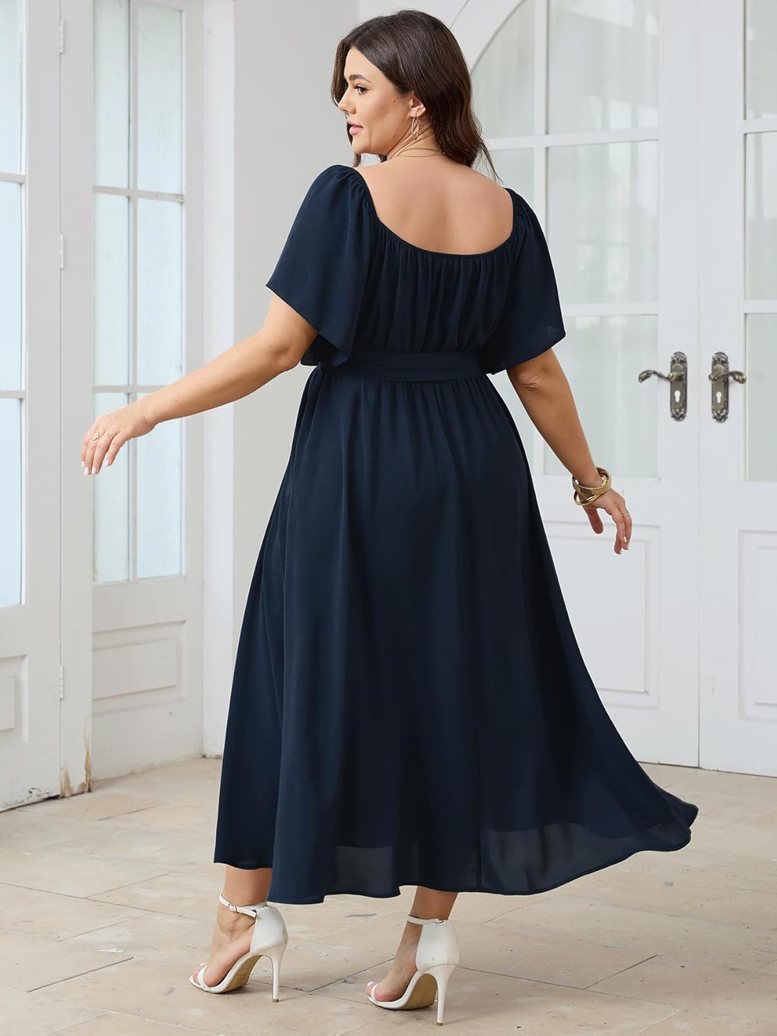SCOMCHIC Womens Plus Dimension Maxi Costume Off The Shoulder Marriage ceremony Visitor Lengthy Costume