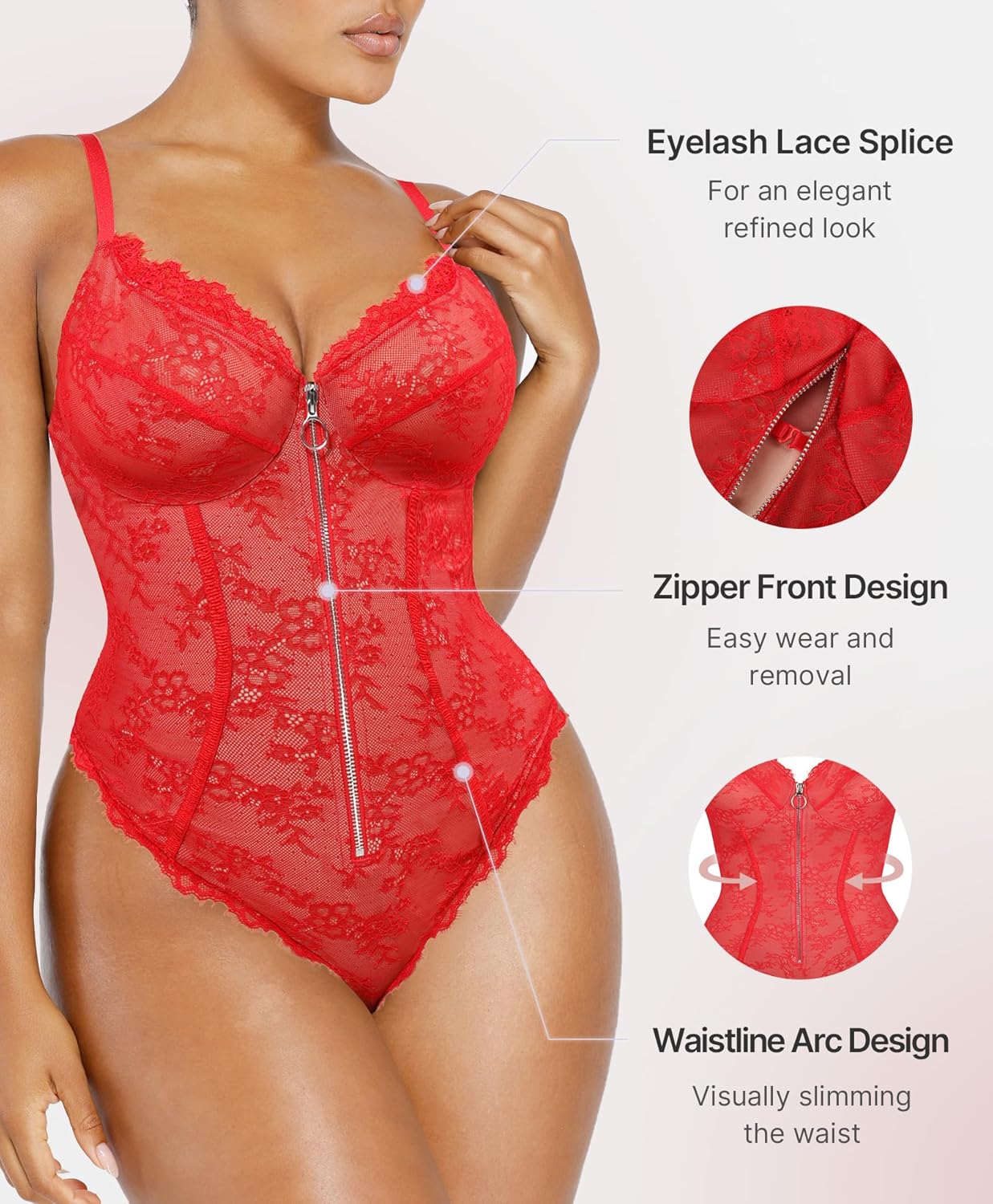 SHAPELLX Lace Bodysuit for Women Tummy Control Shapewear Bodysuit for Women Thong V Neck Sleeveless Backless Body Suit