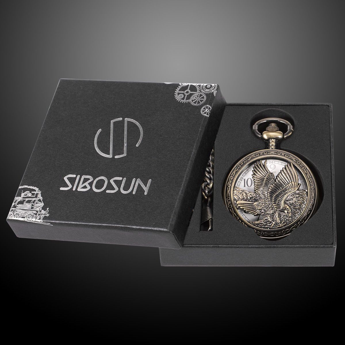 SIBOSUN Eagle Design Pocket Watch with Chain Antique Pocket Watch Quartz Movement Men’s Qocket Watch Arabic Numeral Dial