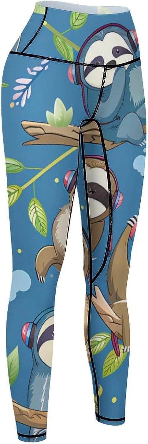 Sloth Pattern Leggings for Women High Waist Tummy Control Workout Yoga Pants for Running Athletic