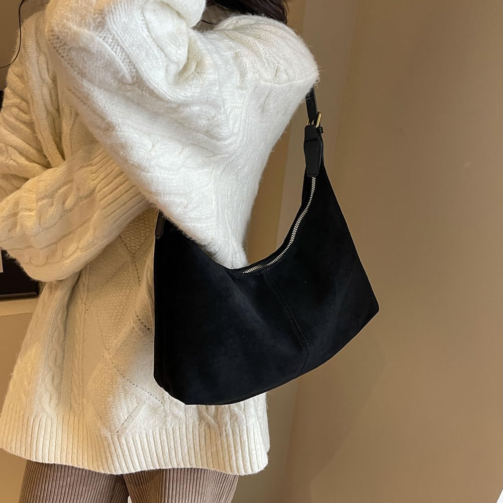 Merchandise mannequin quantity : Suede Crescent Shoulder Bag
