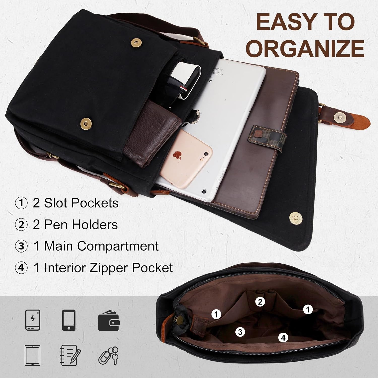 Small Messenger Bag,VONXURY Water Resistant Shoulder Bag Canvas Crossbody Purse for Women Men