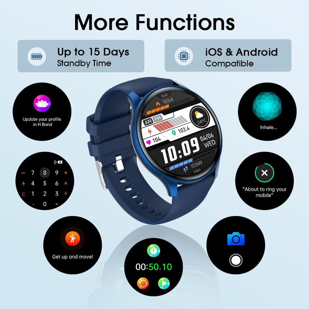 【Bluetooth Calling and Extra Capabilities】Join your Good Watch to your cellphone, permitting you to reply calls with out choosing up your cellphone.Adopting Bluetooth v5.3 name chip, makes your communication in the course of the name smoother. Our watch are geared up with a spread of features together with climate forecast, music management, digital camera management, setting alarms, stopwatch, timer, respiration train, and so forth.