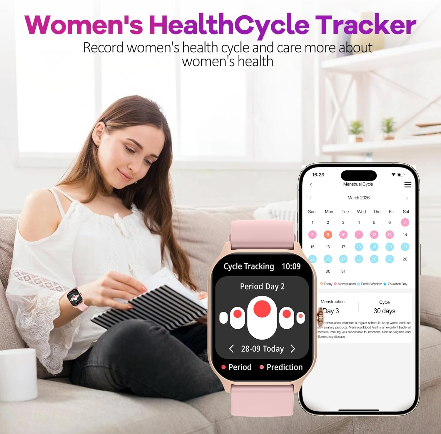 【Bluetooth 5.3 Name & Sensible Notification】That includes superior Bluetooth 5.3 know-how, this girls’s good watch helps clear Bluetooth calling, message receiving, and SMS rejection straight in your wrist. Constructed-in microphone and speaker, enabling name making and receiving with out a SIM card. It synchronizes real-time notifications from Fb, WhatsApp, Instagram, Twitter, and extra, with mild vibration alerts to make sure you by no means miss essential data.The built-in AI voice assistant helps hands-free operations equivalent to climate monitoring, alarm setting, and music management, making it handy and fear free.