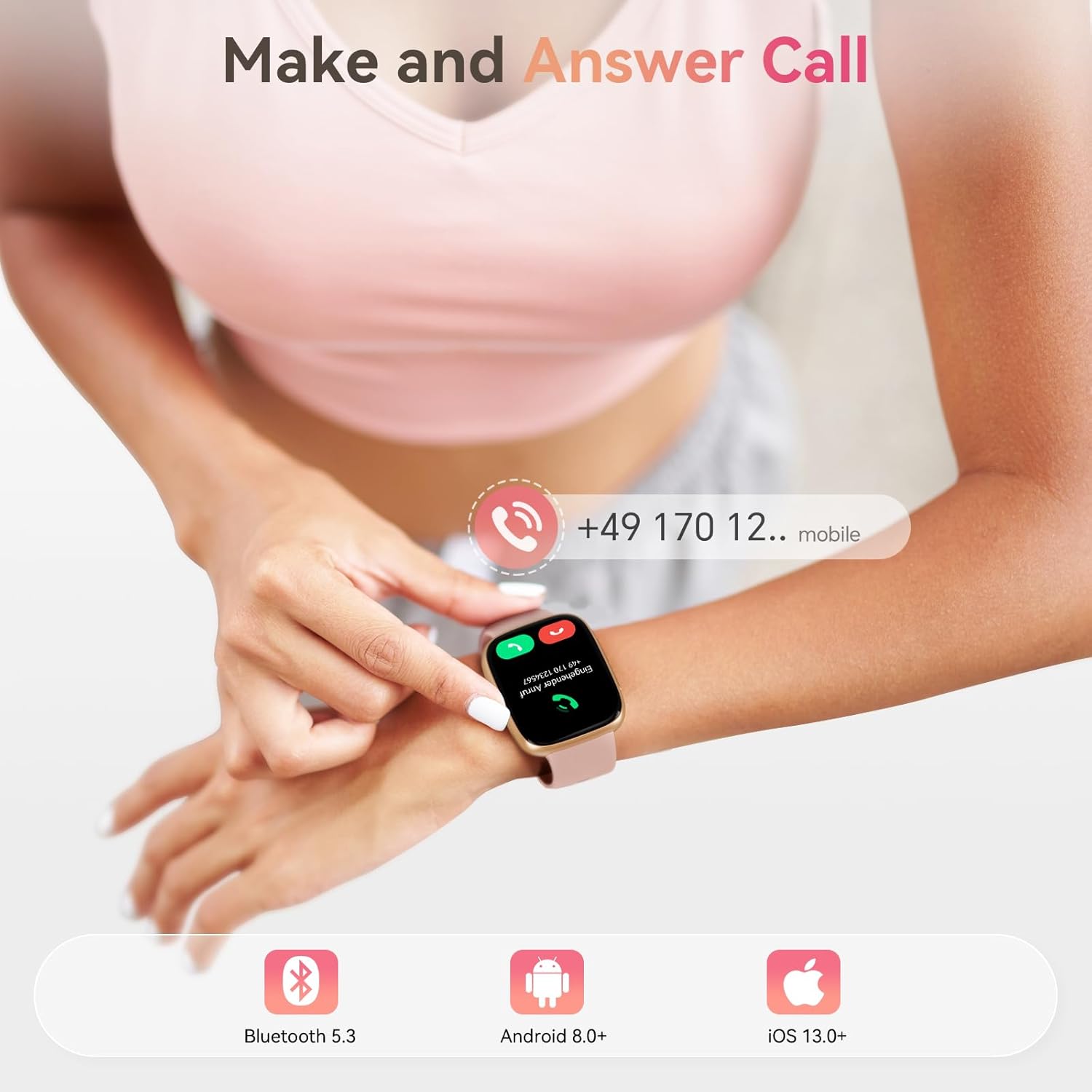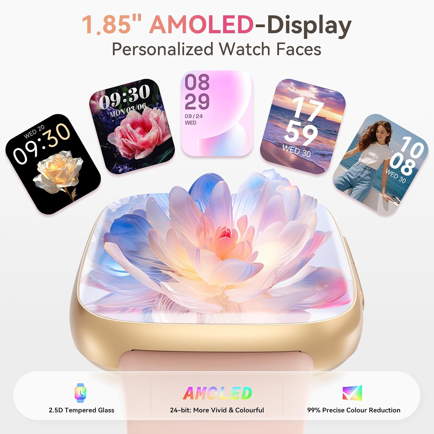 Smart Watch for Women, Answer/Make Call, 1.85″ AMOLED Always-On Display Screen Smartwatch for iPhone & Android, 3ATM Waterproof Fitness Tracker with Heart Rate/Sleep/SpO2 Monitor, 100+ Sport Modes