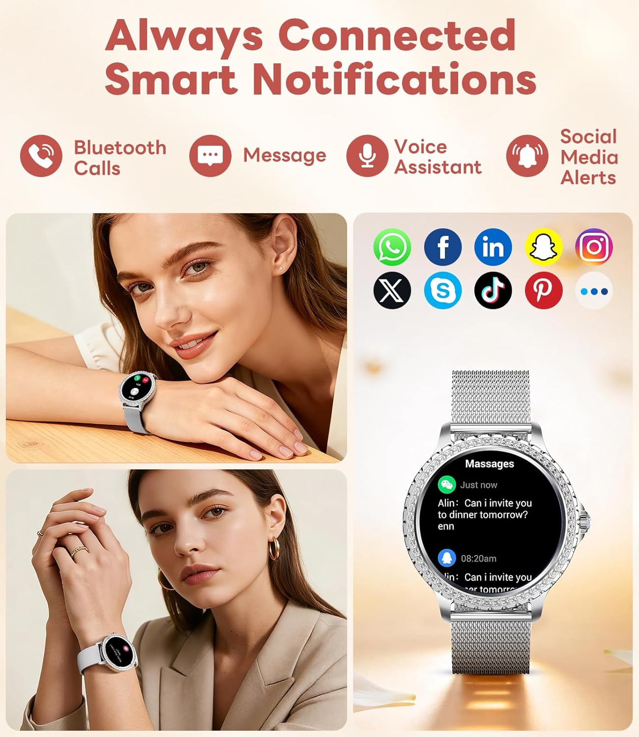 Good Vacation: This elegantly designed good watches for ladies seamlessly blends timeless model with trendy intelligence. From morning notifications to night monitor, it retains her linked with ease—all whereas including a delicate sparkle of sophistication to her wrist. Whether or not it’s a Christmas shock, a Valentine’s Day romance, a birthday celebration, a commencement reward, a promotion, and even Mom’s Day, this womens good watch is greater than a present—it’s a considerate companion for her on a regular basis grace and confidence.