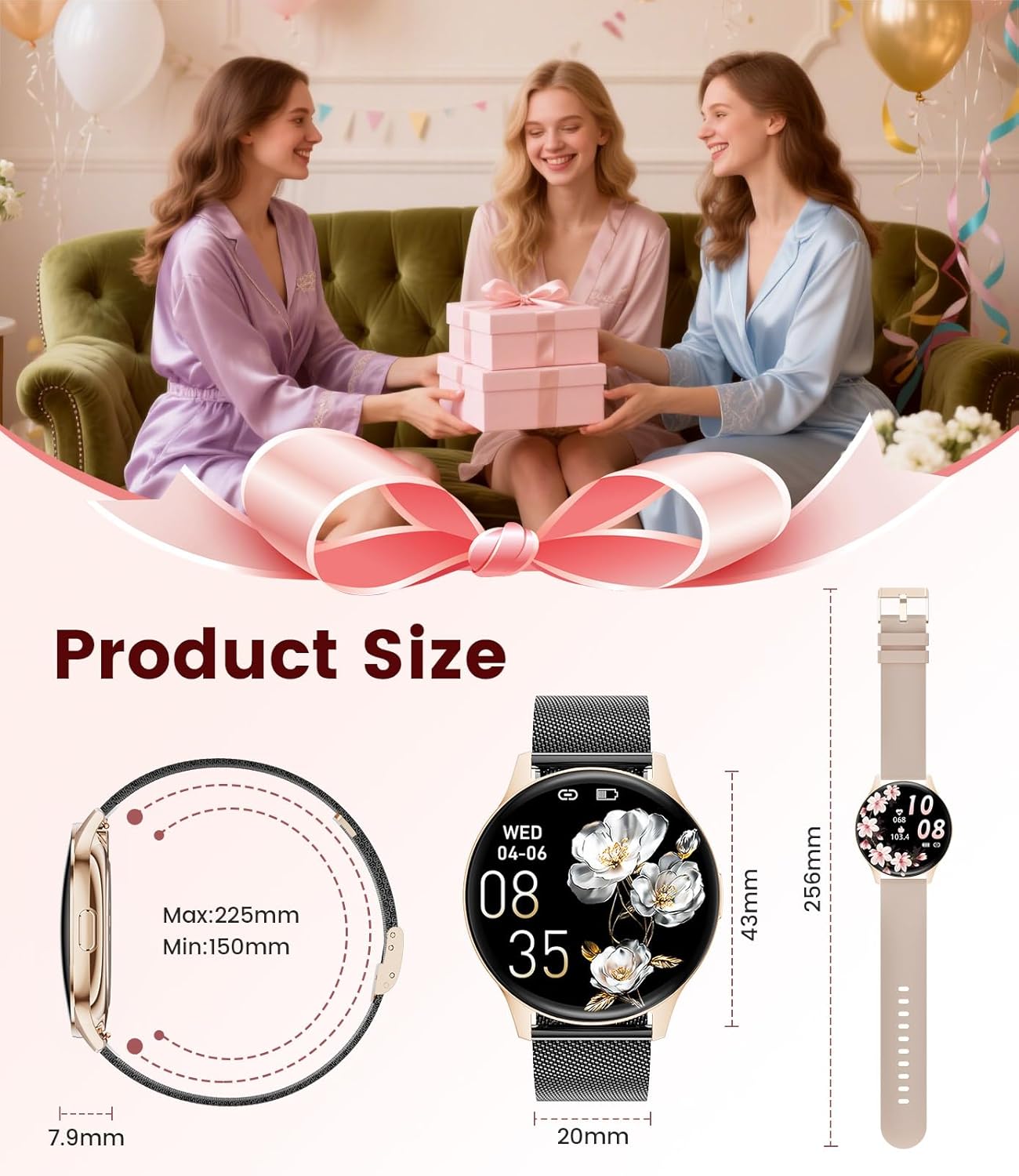 🌸【Elegant, Extremely-Skinny Design for On a regular basis Luxurious】The smartwatch girls redefines light-weight consolation. Crafted with a smooth metallic case and a premium silicone strap, it sits elegantly in your wrist at simply 7,99mm thick. This girls’s smartwatch is the proper fusion of recent know-how and minimalist jewellery, designed to enhance your model from day to nighttime effortlessly.