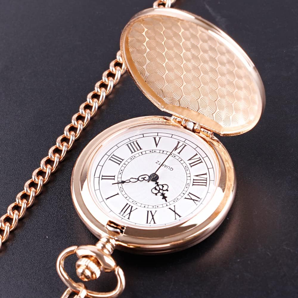 Smooth Pocket Watch Alloy Steel Quartz Roman Numerals with 37cm Chain for Father’s Day Xmas Best Gifts
