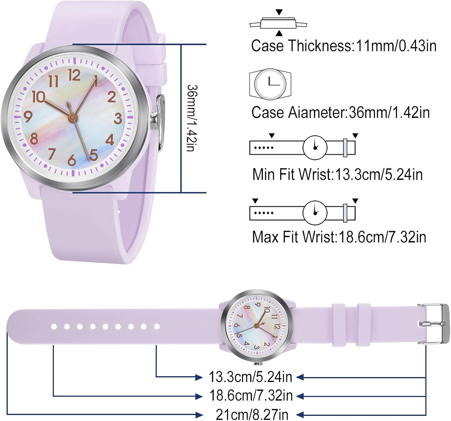 Tremendous gentle and sturdy 2mm thickness ultra-thin PU band, with 11 adjustment buckles and stainless-steel buckle, appropriate for youths with wrists 15-21cm.