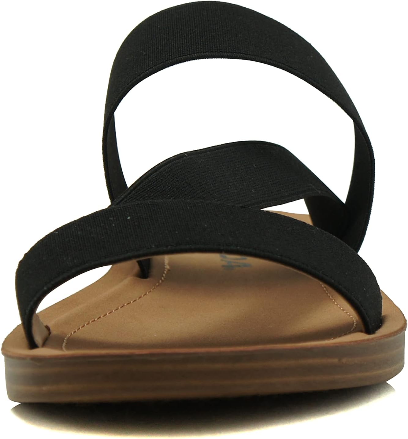 Vast stretchy straps prime an elegant slide sandal good for slipping on after yoga or sporting along with your favourite pair of denims.
