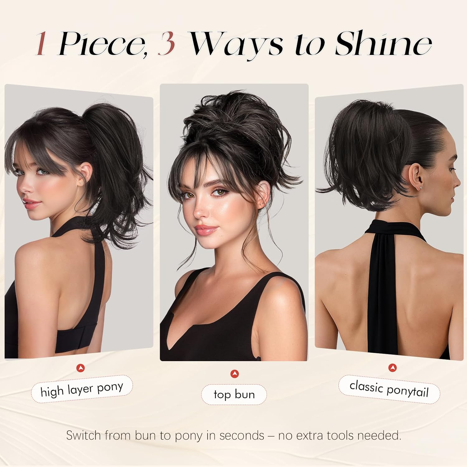 【Hidden wires, seamless look】 We have improved the design by masking the versatile steel wires with layered hair fibers, making certain they keep hidden—so you’ll be able to form pure quantity with out fear and put on your ponytail with complete confidence.