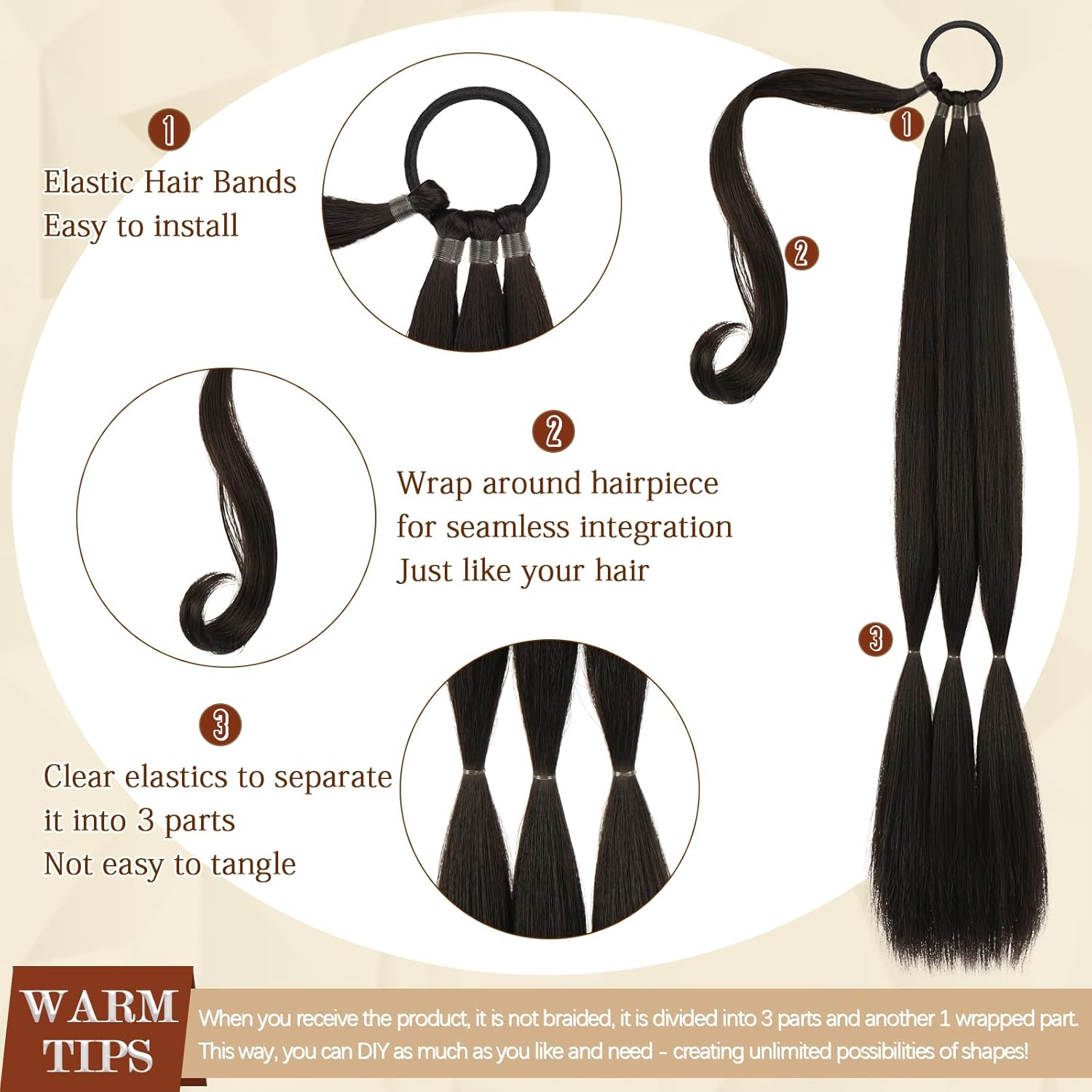 Lengthy braided wrap ponytail extension Product of artificial heat-resistant fiber hair, comfortable and easy, simple to comb, not simple to knot.Weight: 0.31lb-26inch(0.35lb-30inch). This weight is not going to make you are feeling too heavy and extra snug to put on. No burden for all-day use!