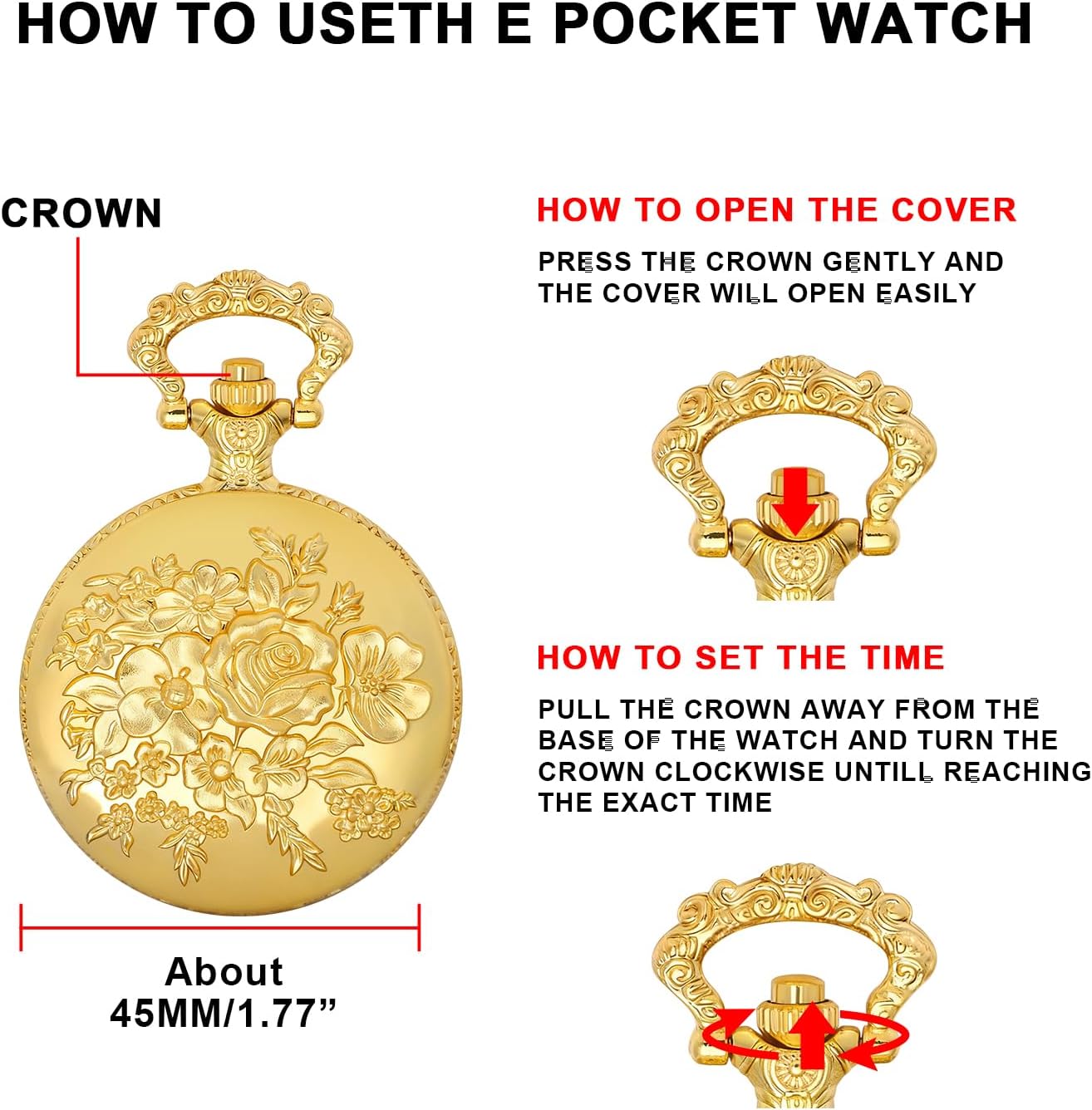 Be the first to review “Solid Small-Flower Quartz Pocket Watch with an Elegant Vintage Style and Arabic Numeral Dial”
