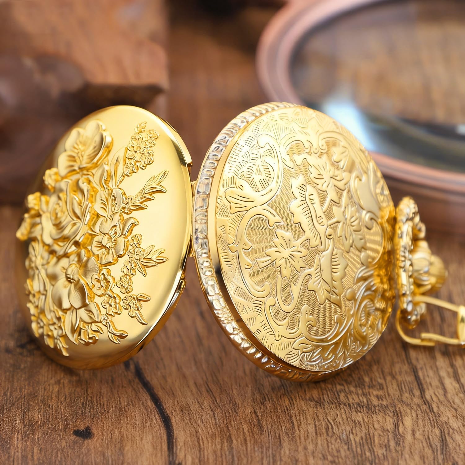 Solid Small-Flower Quartz Pocket Watch with an Elegant Vintage Style and Arabic Numeral Dial