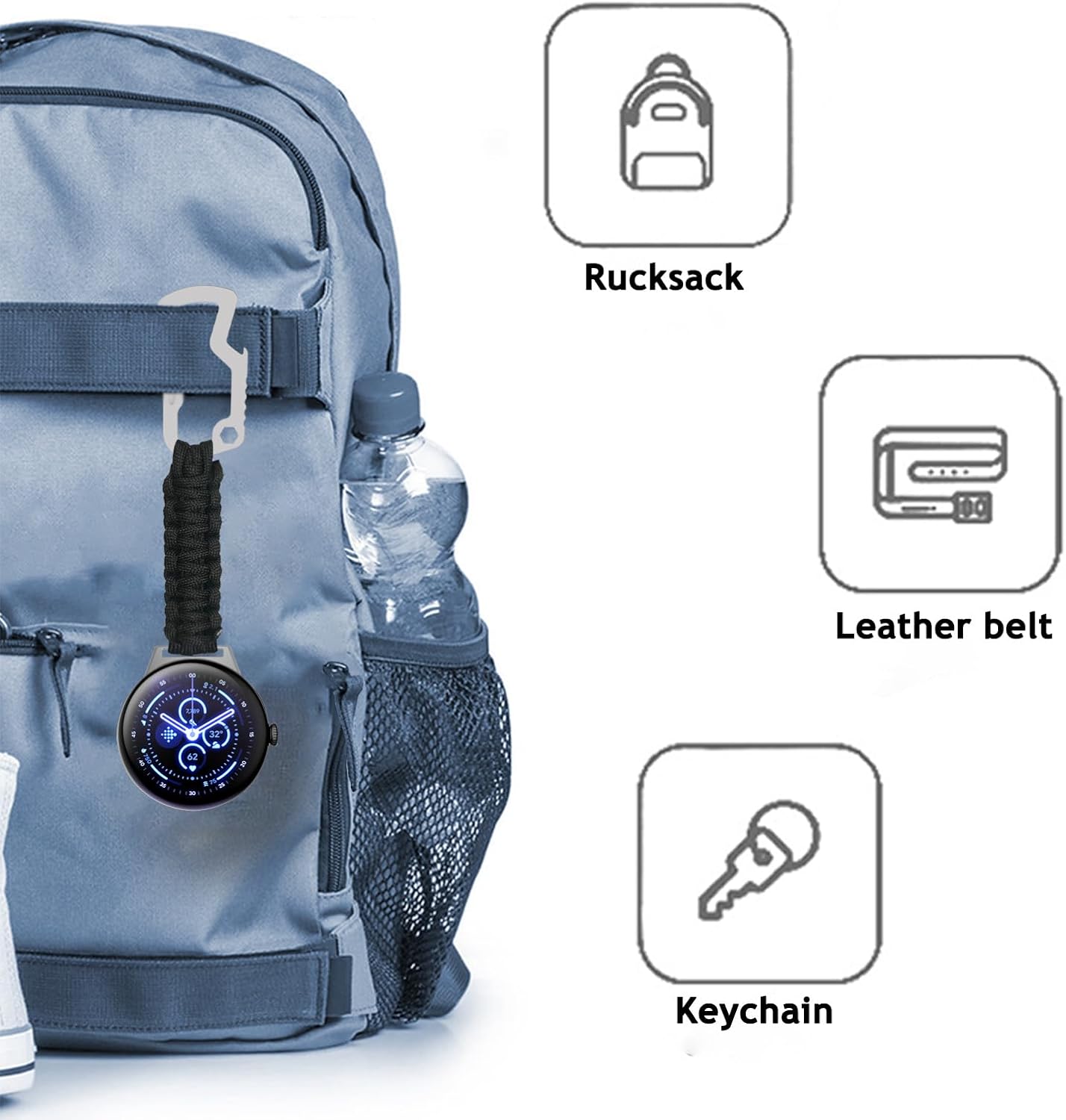 Suitable with Google Pixel Watch 3 45mm watch clip, nurse strap, nylon watch band, EDC Keychain, watch keychain clip, watch chain clip, strap adapter ring, watch pocket strap, keychain, keychain strap.