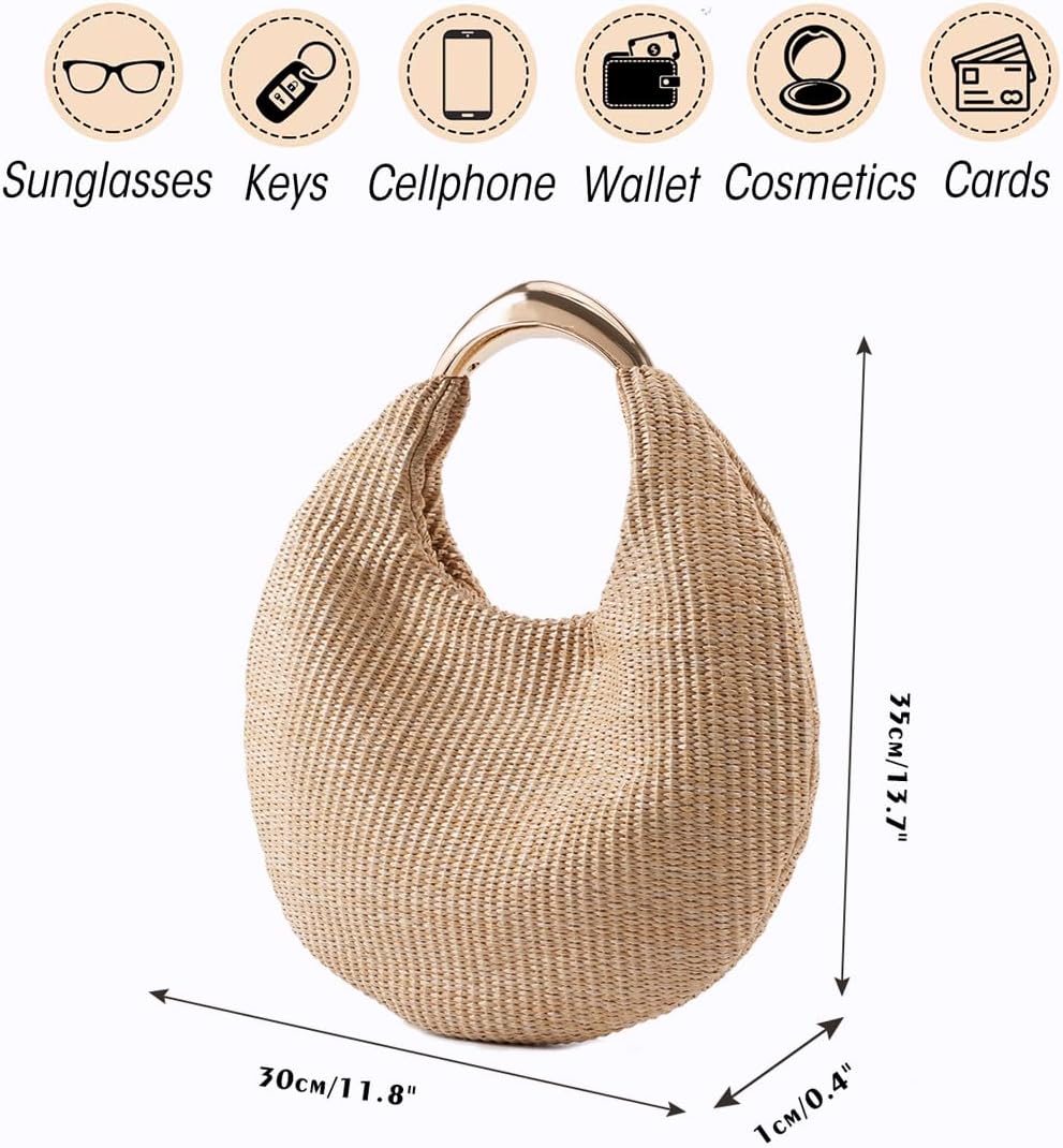 Straw Crescent Bag for Women – Boho Braided Summer Beach Tote Purse, Lightweight Top Handle Handbag for Vacation Casual Daily