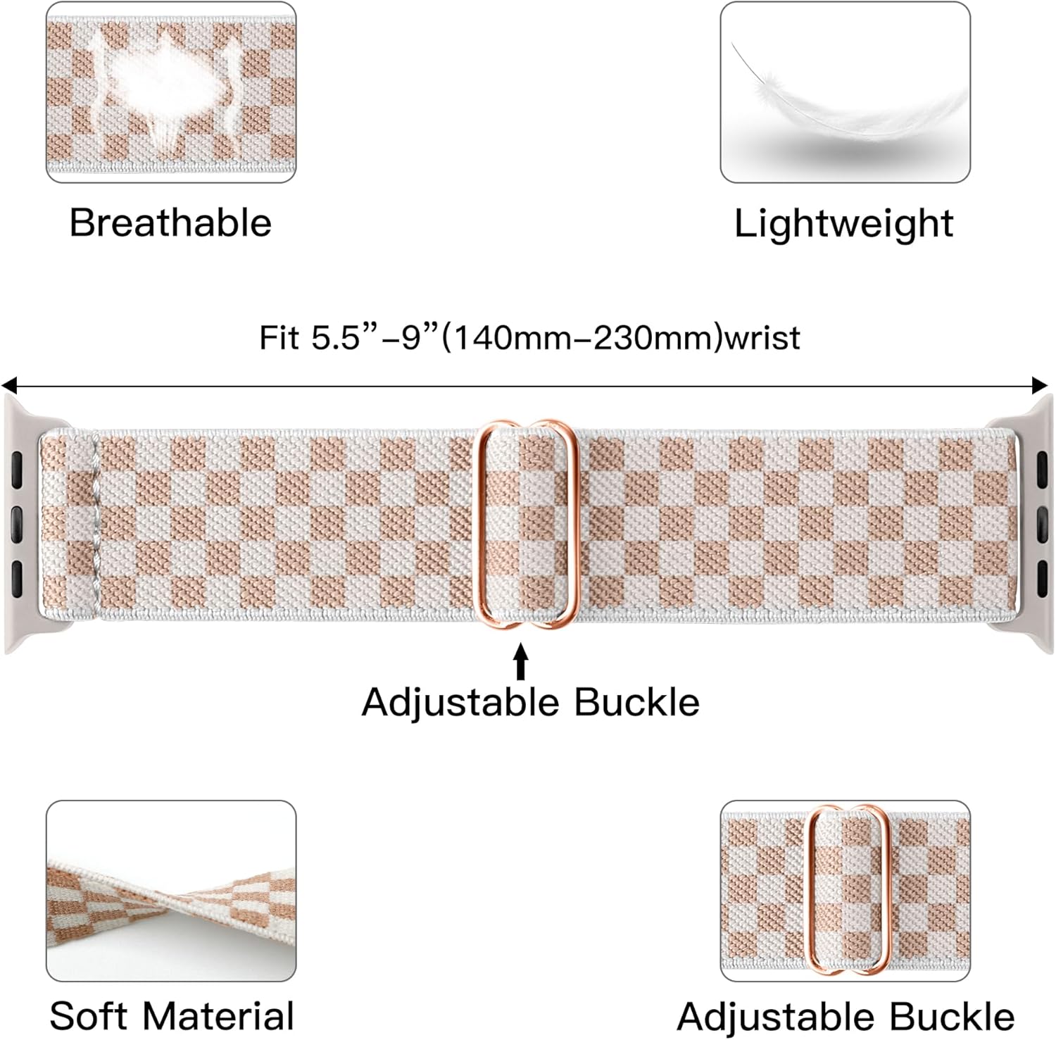 Adjustable Measurement: The adjustable buckle design of this apple watch band appropriate for wrist measurement 5.5″-9.5″, permits you to alter the dimensions of the loop as you would like. With the tremendous sturdy stretchy nylon, straightforward to place it on or take it off