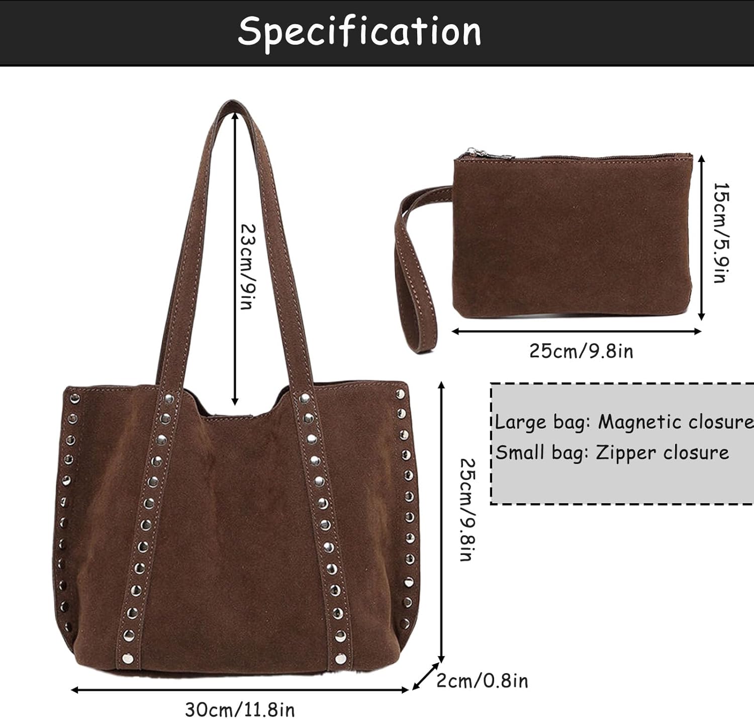 Be the first to review “Suede Bag Mini Trendy Faux Suede Tote Bag for Women Studded Purse Vintage Hobo Shoulder Handbag for Work Travel”