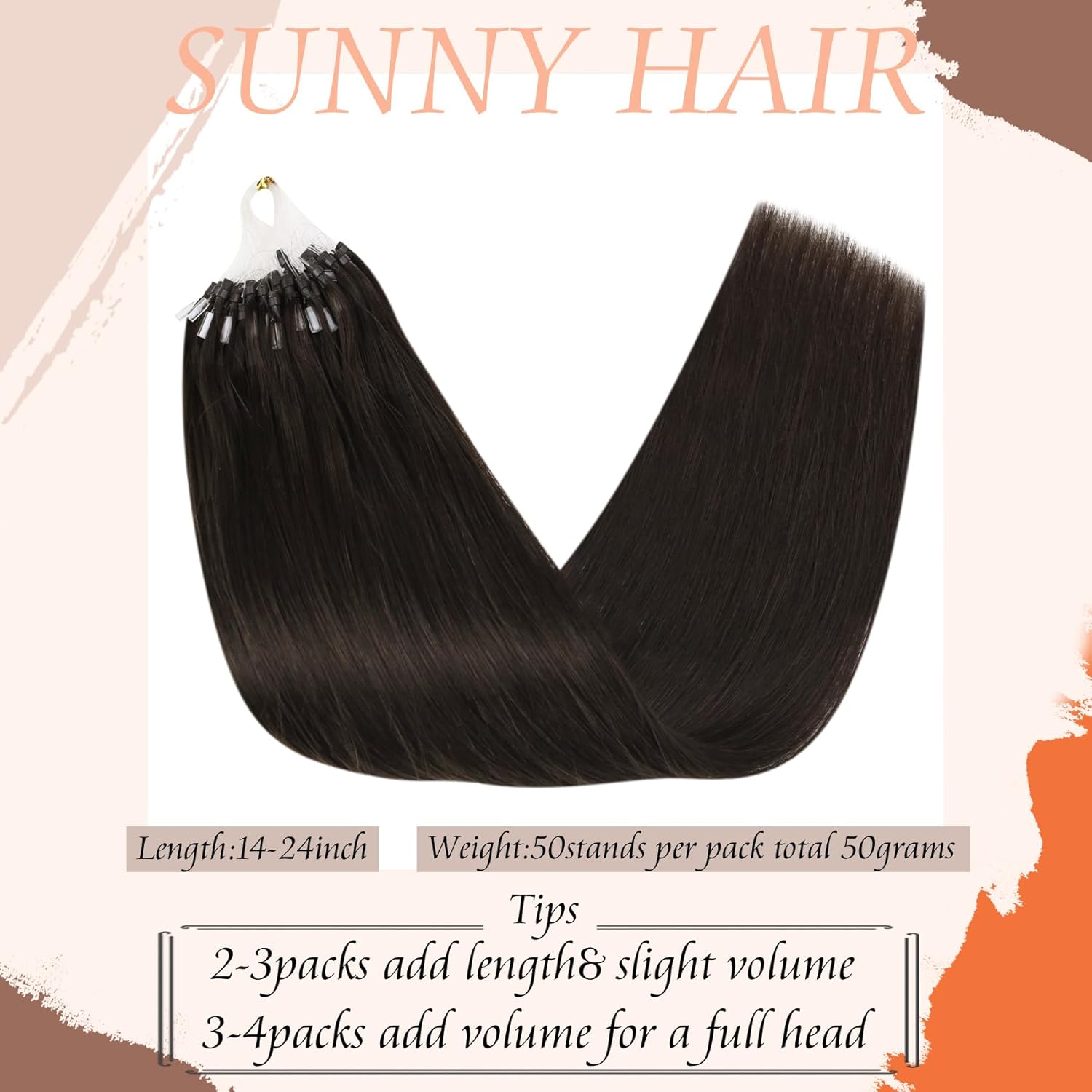 Sunny Hair Micro Bead Hair Extensions Dark Brown Micro Hair Extensions Real Human Hair Straight Micro Loop Real Human Hair Extensions Remy Micro Ring Extensions Real Human Hair Add Volume 50g 20in