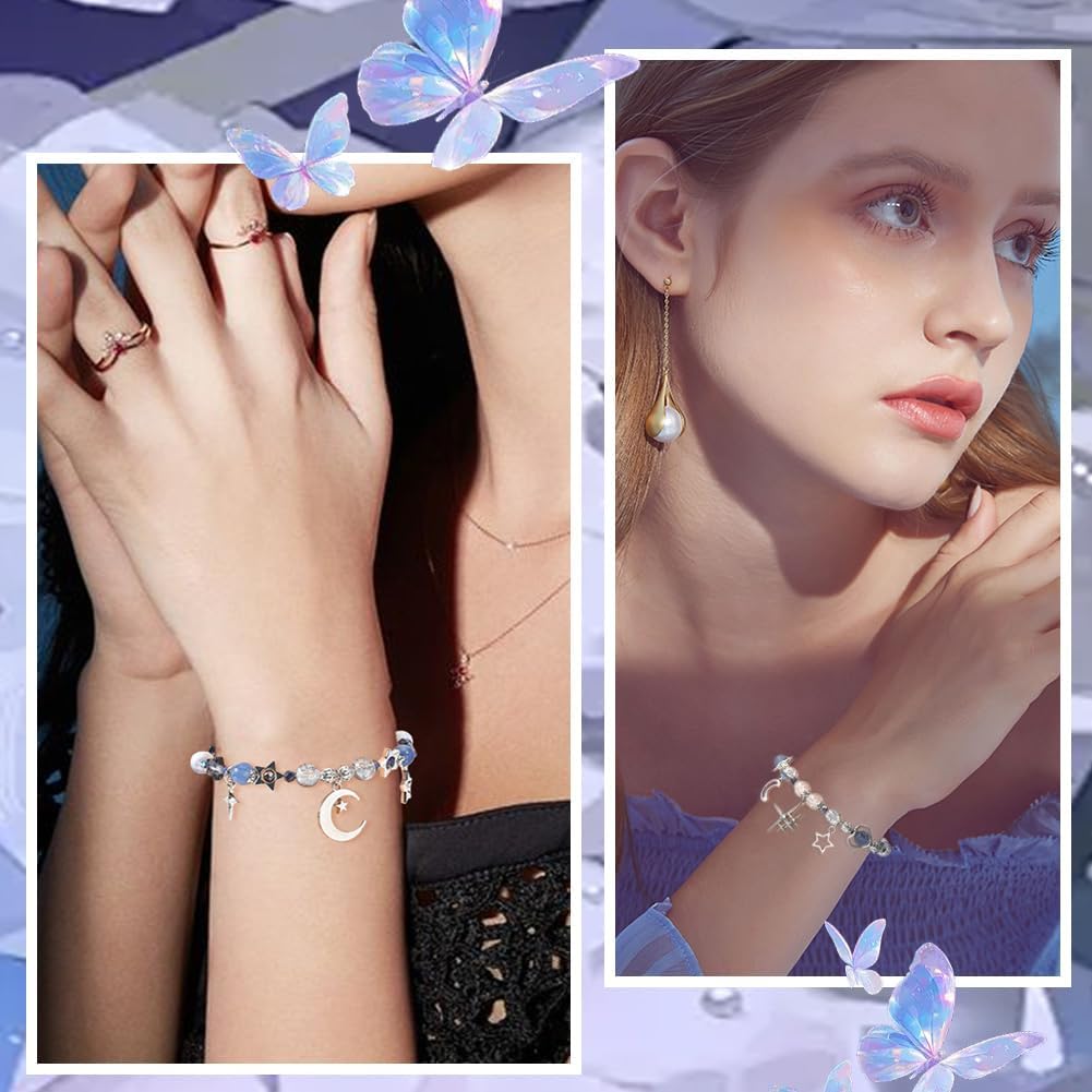 SUNNYCLUE 1 Field 314Pcs DIY 6 Units Bracelets Making Package Moon and Star Charms Crescent Stars Bead Blue Faceted Glass Imitation Pearl Free Spacer Beads for Jewellery Making Kits Grownup Ladies Items