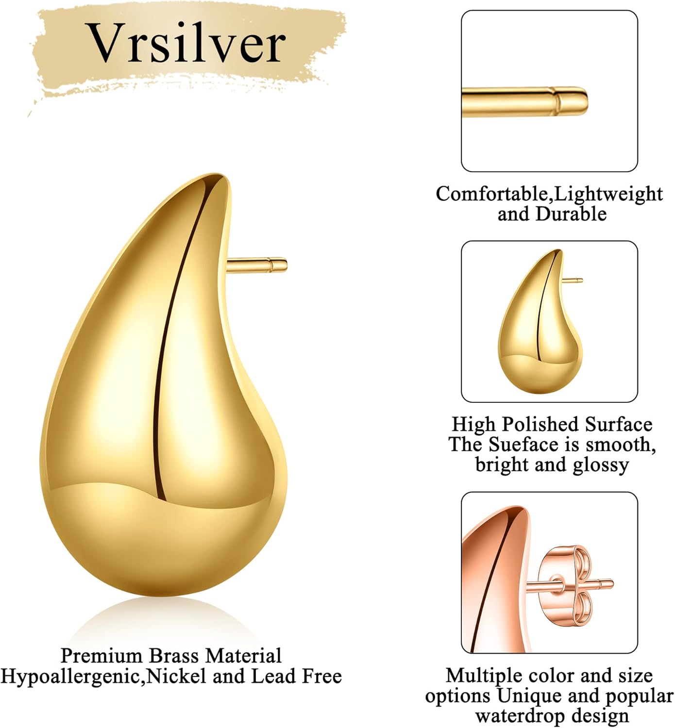 Gold/Silver/Rose Gold Earrings for Ladies Ladies Teardrop Earrings for WomenTeardrop Earrings for Women