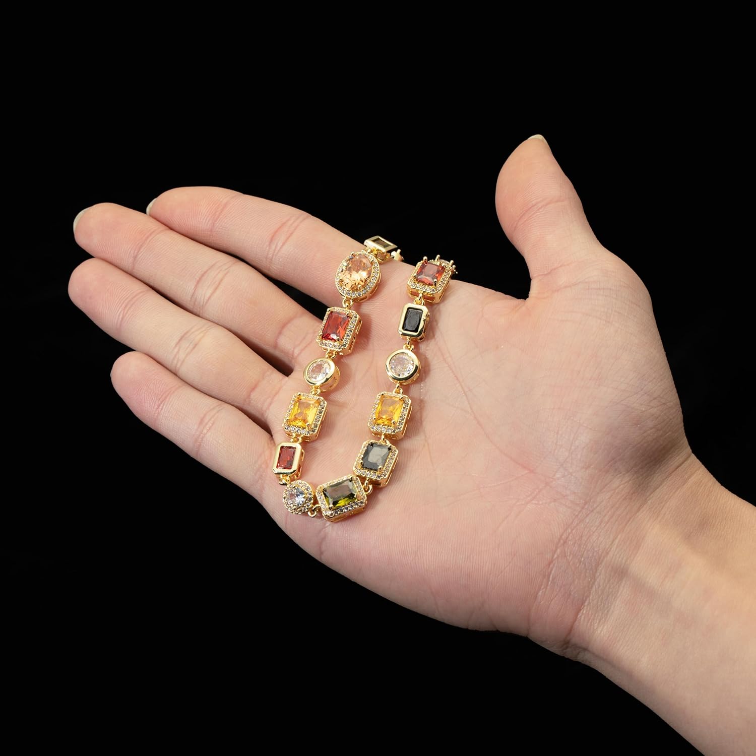 Tennis Necklace for Girls,DaintyGold Plated Diamond Crystal Choker, Colourful Cubic Zirconia Chain Gems Assertion Necklace for Males Bride Wedding ceremony Valentine’s Day Presents | One Measurement – 16.5 Inches
