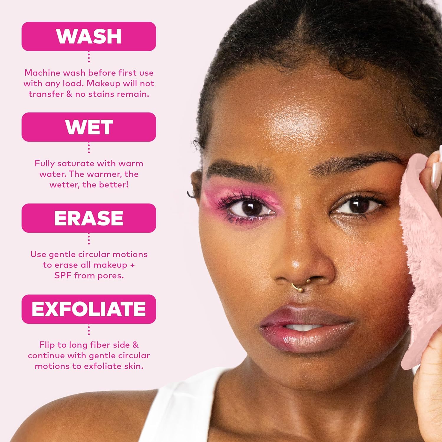 Erase all make-up with JUST WATER™️ together with waterproof. Our patented, water-activated, cloud-soft fibers gently & simply take away all make-up & sunscreen from pores. 2 in 1 profit: one aspect erases make-up & one aspect exfoliates pores and skin. ✓ Dermatologist Beneficial ✓ SmartErase™️ Know-how ✓ Reusable & mechanically cleanable ✓ Nice for heavy make-up The Authentic MakeUp Eraser®️ is non-irritating and non-drying, making it excellent for delicate pores and skin. It is non-comedogenic, protected for lash extensions, & totally oil-free for a recent, comfy expertise. ©️ Disney Moist with heat water. The hotter, the wetter, the higher! Use light round motions to erase make-up with the quick fiber aspect. Flip to lengthy fiber aspect (aspect with tag) to exfoliate the pores and skin. Machine wash sizzling & dry. Dryer sheet & cloth softener protected. Machine wash earlier than first use. Contains 1 PRO MakeUp Eraser, 15.5in x 7.25in.
