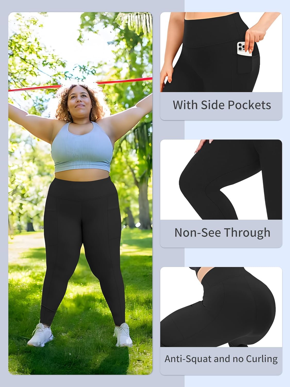 3 Pack Plus Dimension Leggings with Pockets for Ladies