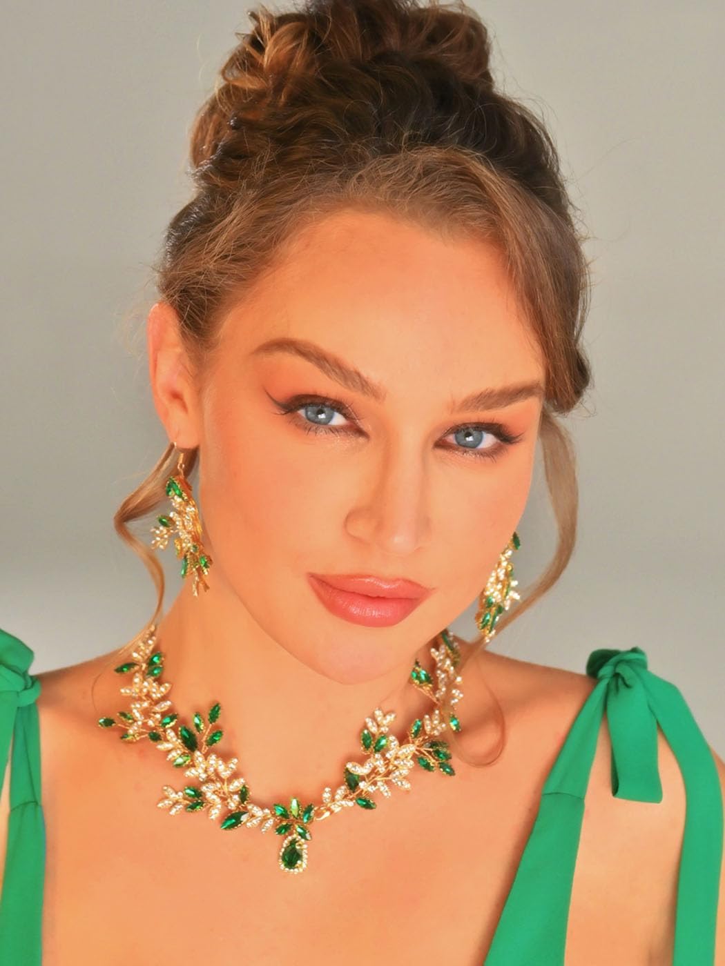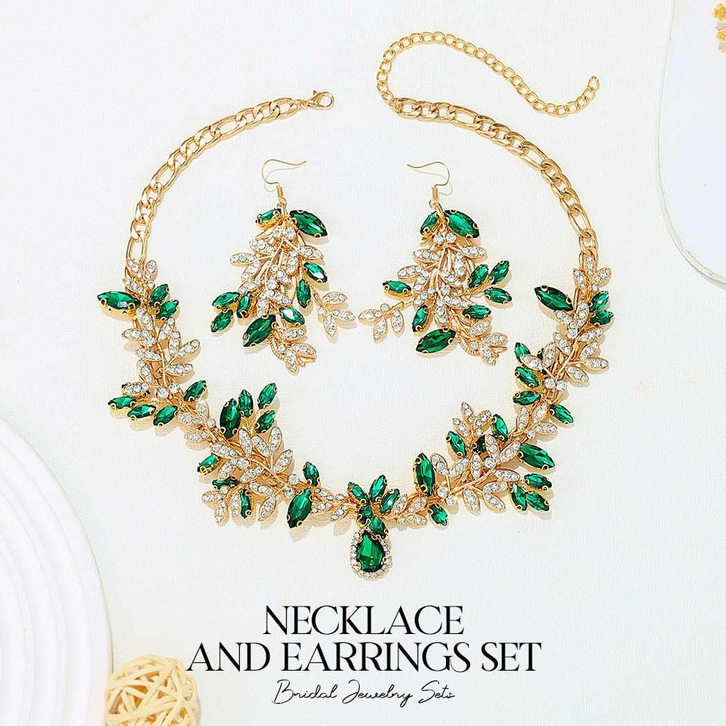 Unicra Bridal Wedding Jewelry Set Gold Green Crystal Necklace Earrings Sets Rhinestone Formal Costume Mothers Day Gifts Jewelry for Women and Brides