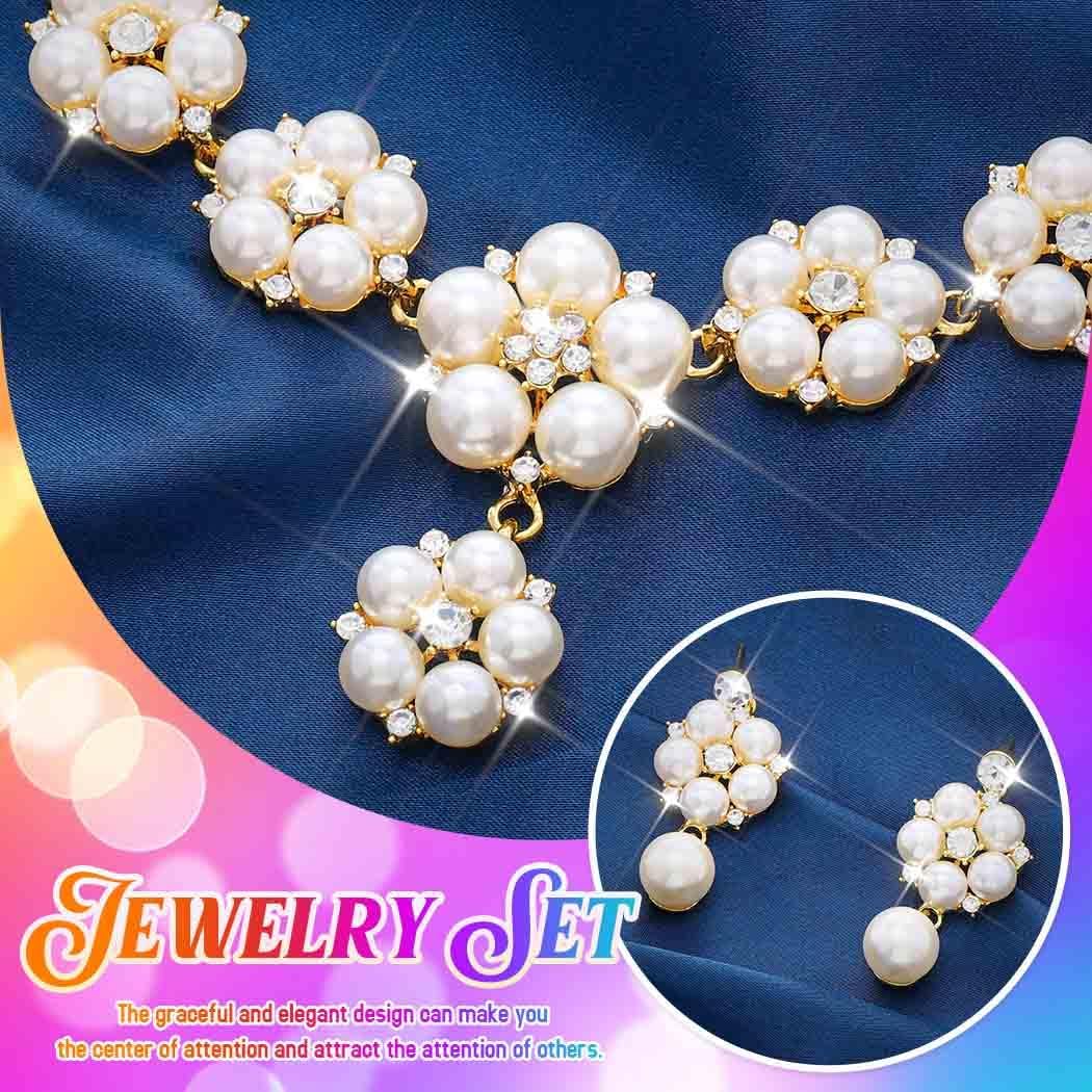 Unicra Gold Pearl Bridal Wedding Jewelry Set Rhinestone Necklace Earrings Sets Flower Formal Prom Costume Jewelry Sets for Women and Brides