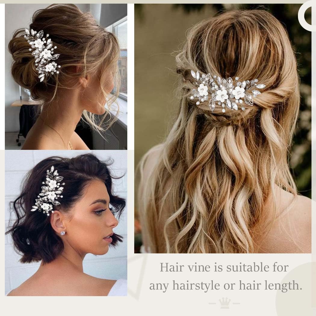 Unicra Silver Flower Bride Wedding Hair Vine Leaf Bridal Hair Piece Rhinestone Hair Accessories Beaded Headpieces Jewelry for Women and Girls (Silver)