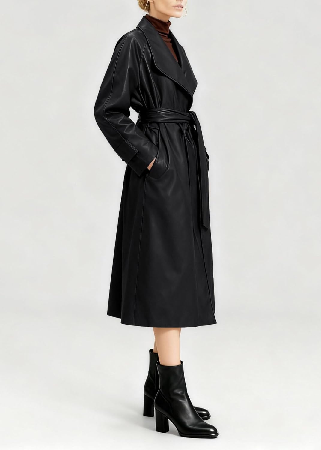 utcoco Womens Fake Leather-based Traditional Lapel Trench Coat
