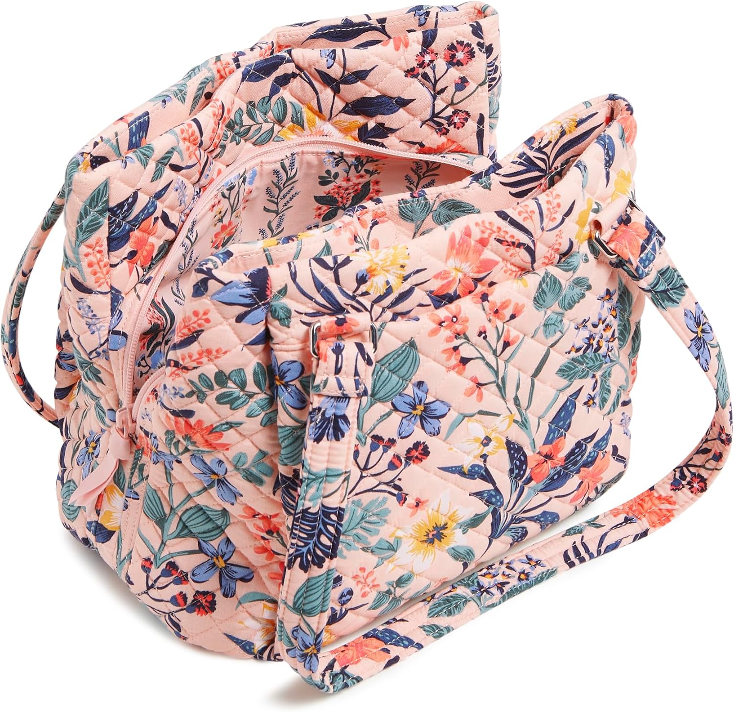 Vera Bradley makes your new favourite purse – whether or not you’re in search of a crossbody, a satchel, a wristlet, a hobo, or a clutch, now we have your hand bag wants coated, together with pockets and group on your cellphone and different valuables.. Our cotton is colourful, light-weight, and packable. Bag has three compartments (two with hidden magnetic closures, one zip shut). Exterior options two slip pockets (one with a hidden magnetic closure). Inside contains a zip pocket. Hidden magnet and zip closures.. Machine wash chilly, light cycle, solely non-chlorine bleach when wanted; line dry