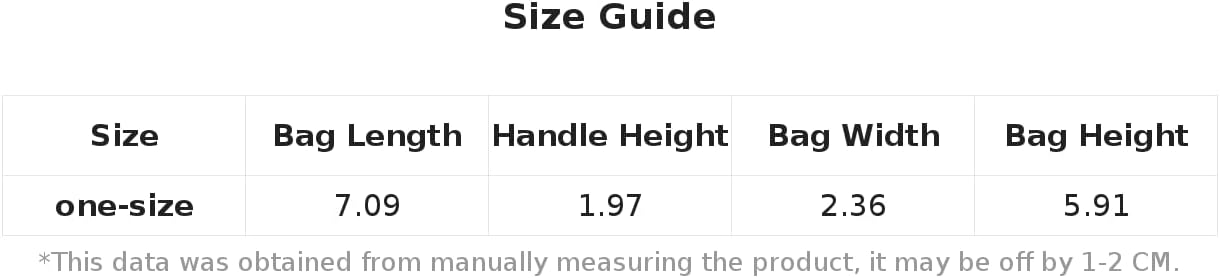one-size:Bag Top:5.9IN,Bag Size:7.1IN,Bag Width:2.4IN,Deal with Top:2.0IN