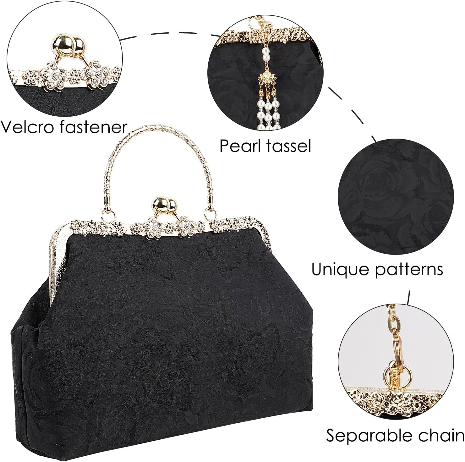Timeless Magnificence, Fashionable VersatilityMake an unforgettable entrance with a night bag that blends classic appeal with modern perform. The DODAMOUR clutch is a masterpiece of element, designed for essentially the most memorable nights.Beautiful Craftsmanship: A refined floral sample ripples throughout the deep black, satin-like material, framed by a fantastically sculpted, gold-tone steel body and topped with a safe kiss-lock clasp.A Contact of Glamour: A swish pearl tassel drapes from the deal with, including elegant motion to your ensemble. It is totally removable for moments if you favor a extra understated shine.Prepared for Any Event: Inside, the structured physique organizes your necessities, whereas the detachable chain helps you to shift from a shoulder bag to a sublime handheld clutch in seconds—very best for galas, weddings, and cocktail events.Bundle Consists of: