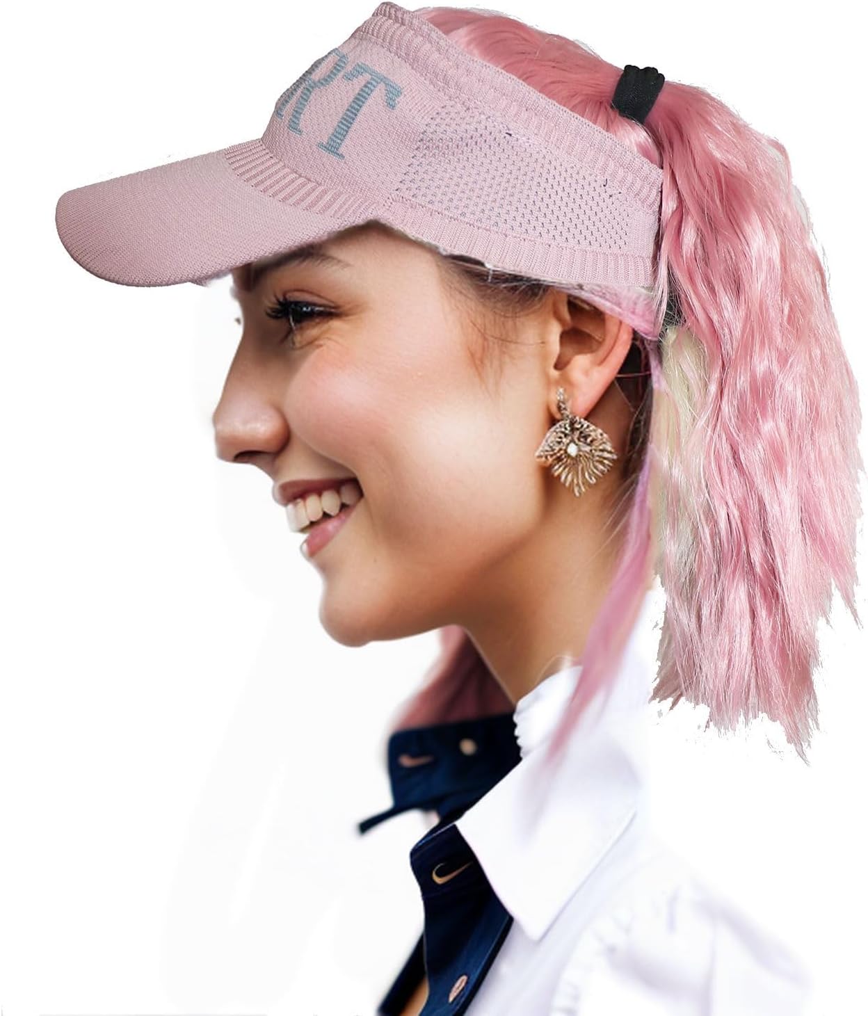 LEEWIN Visor Cap with Single Colour Corn Curly Velcro Hair Piece,Wig Hat Artificial Hairpiece for Ladies Women
