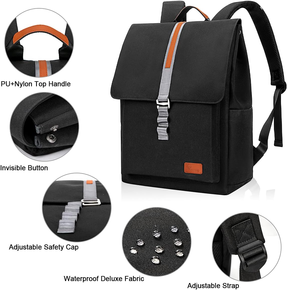 Voova Work Backpack for Adult Men Women, Vintage Laptop Backpack Computer Bag with 15.6 Inch Laptop Compartment, Fashion Casual Daypack Bookbag for Travel and College, Black