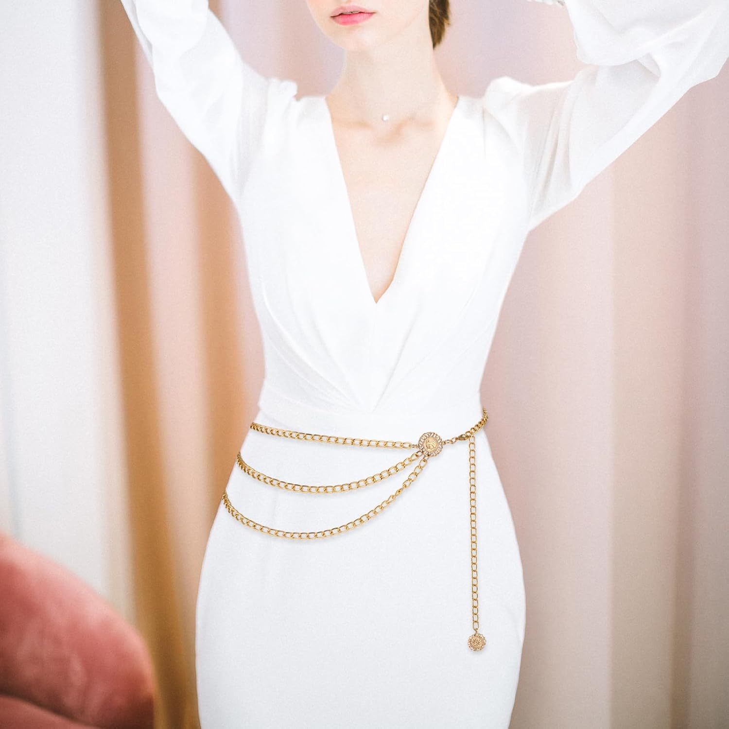 COMNICO Waist Chain Belt, Steel Gold Jewellery Physique Chain Style Adjustable Physique Waist Hyperlink Belts Jewellery Equipment Physique Adorn for Girls Women Gown