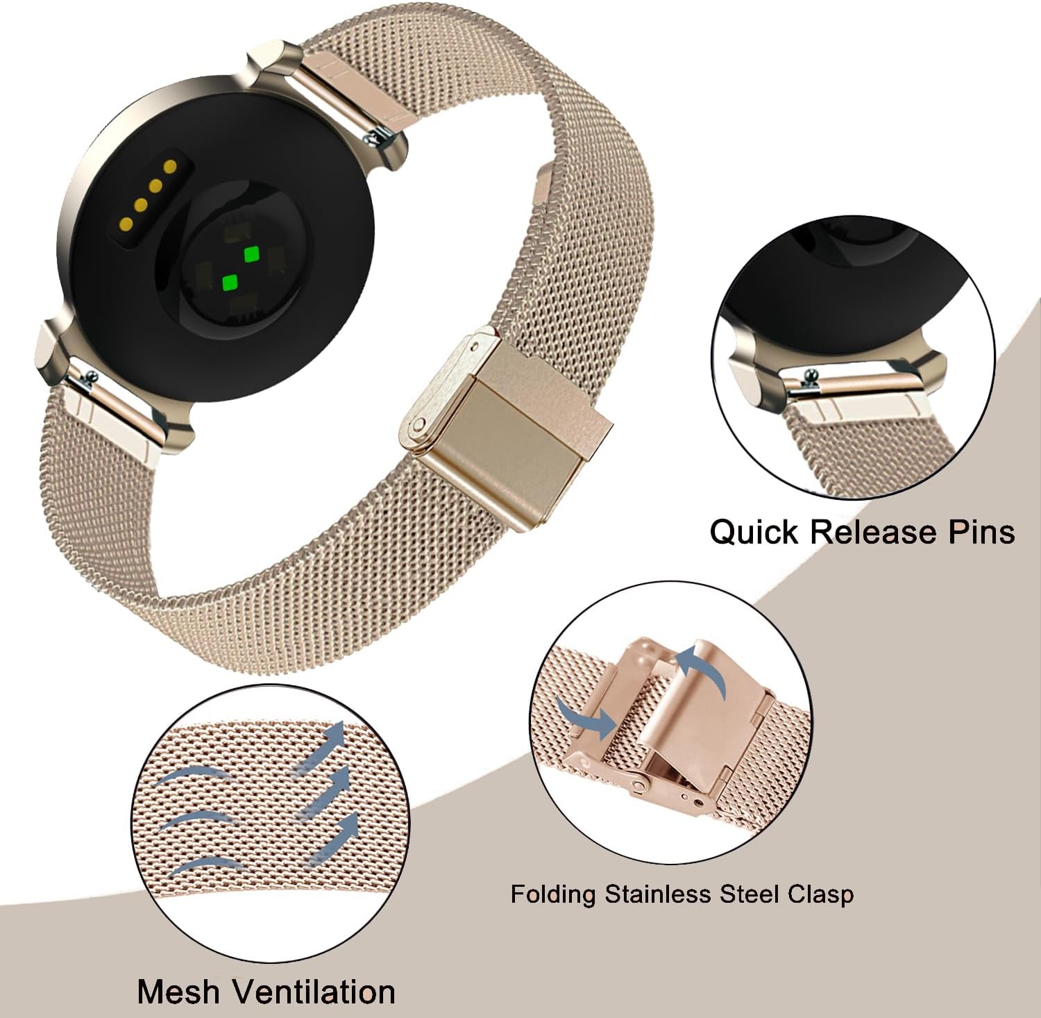 CUNUJIX Watch Bands Appropriate with Garmin Lily 2 / Lily 2 Lively, Metallic Mesh Stainless Metal Alternative Band Strap for Garmin Lily 2 Girls