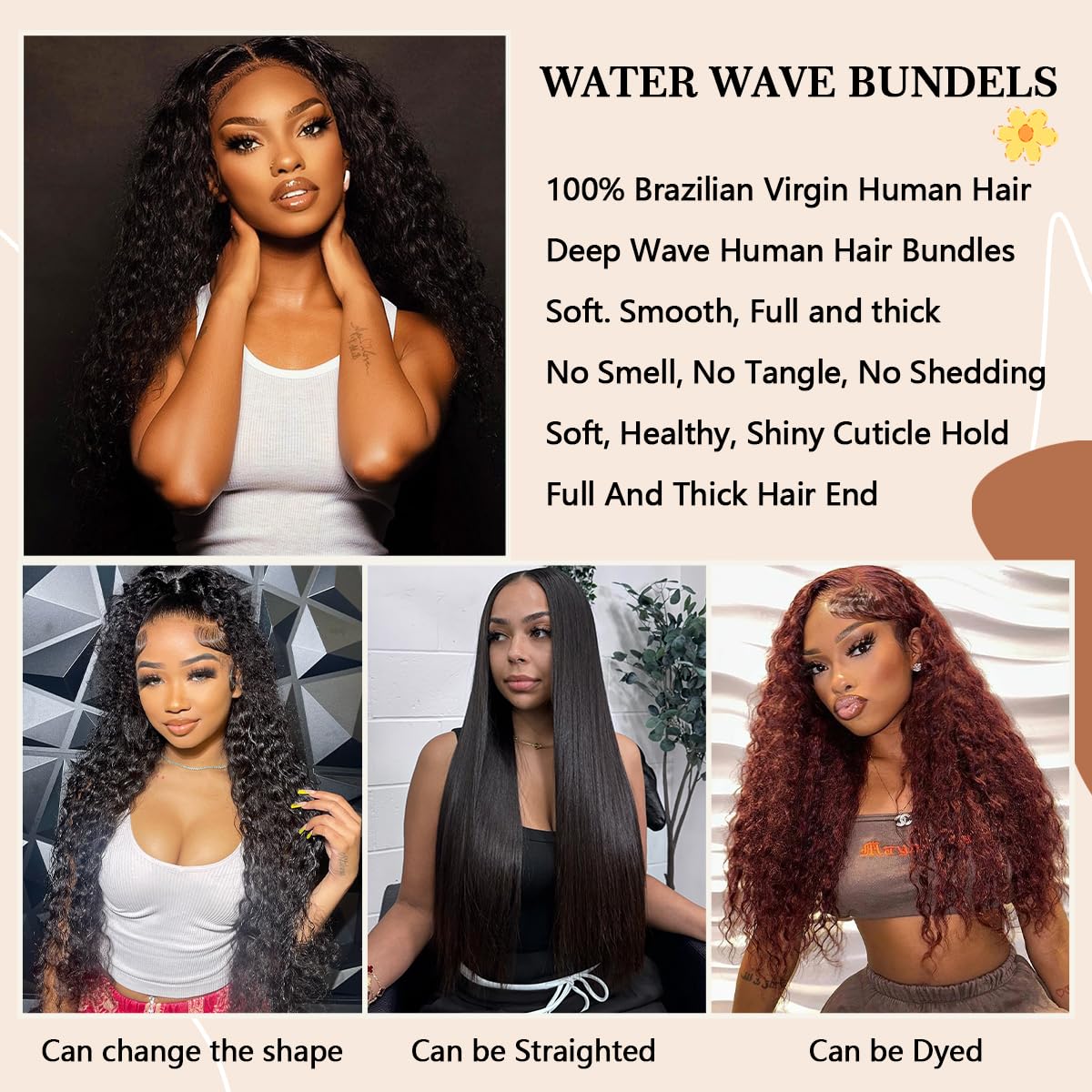 100% Human Hair Brazilian Water Wave Hair Bundles