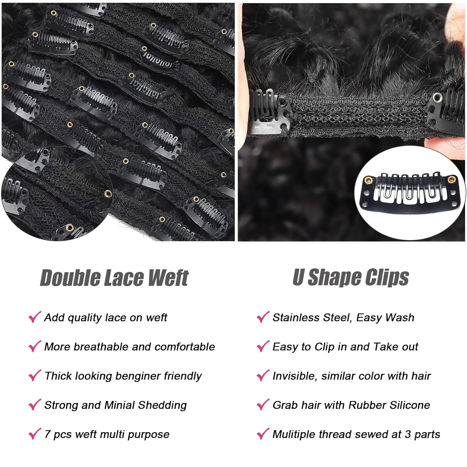 【Safe U-Formed Metal Clips】Curly hair extensions clip in human hair, metal U-Formed clips from South Korea, the silicone lined has a sure friction to maintain the hair extensions in place and innocent to your personal pure hair. A number of thread sewed at 5 components to make the clips keep stably even after frequent use! (After tons of of actual try-on assessments).