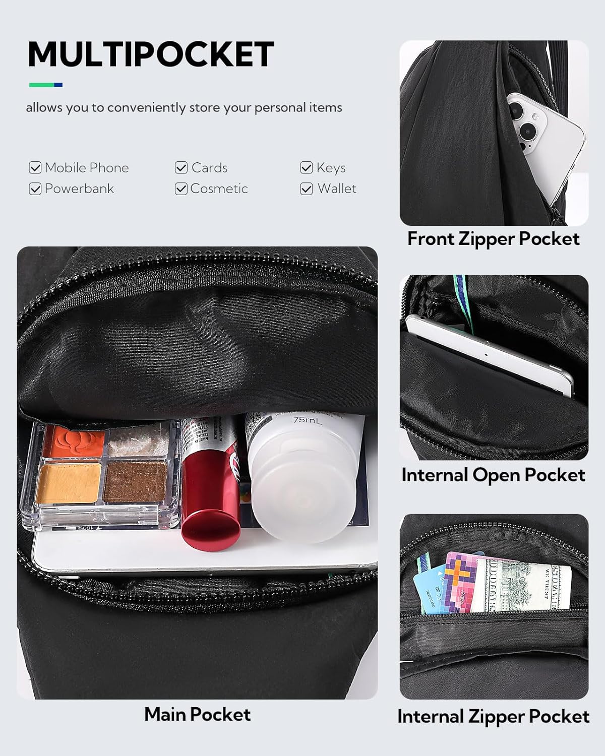 A number of Pockets: Small crossbody backpack has 4 pockets. The primary massive zipper pocket can retailer all sizes of cell telephones, small umbrellas, small water bottles, sun shades, and so forth. The within zipper pocket can retailer wallets, playing cards, money and different valuables and the inside open pocket can retailer different small gadgets.A number of pockets are designed to maintain your all the things so as and liberate your arms!