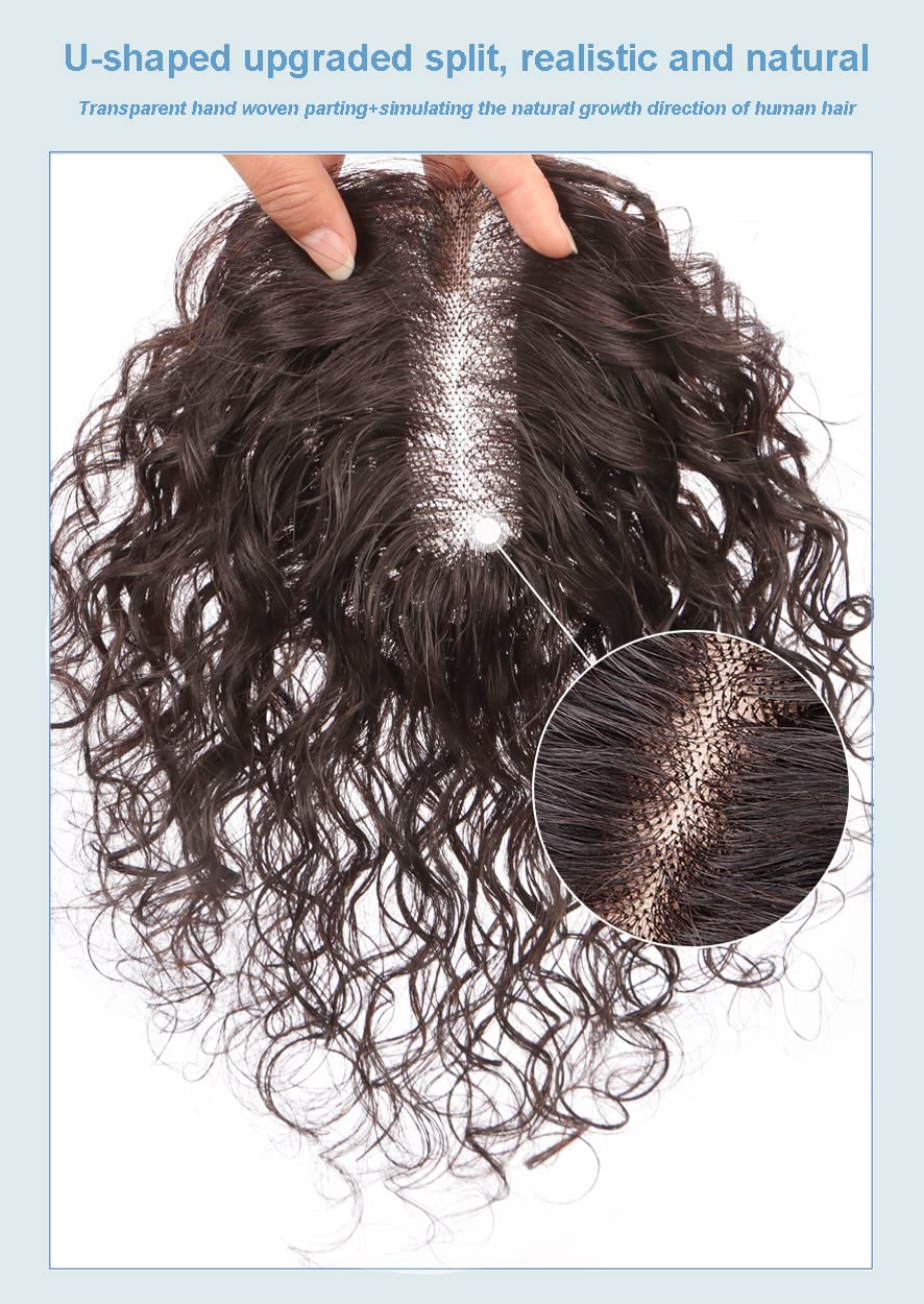 Save Your Hairline Skinny Curly Wave Human Hair Topper Clip on Prime Hair Piece Actual Hair Toupee for Ladies
