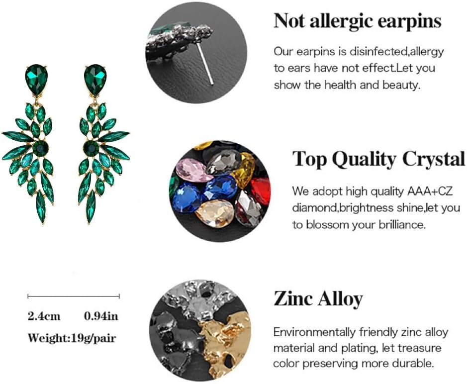 Wedding Bridal Art Deco Crystal Dangle Earrings for Women, Zinc Alloy Hypoallergenic Statement Earrings for Party Prom
