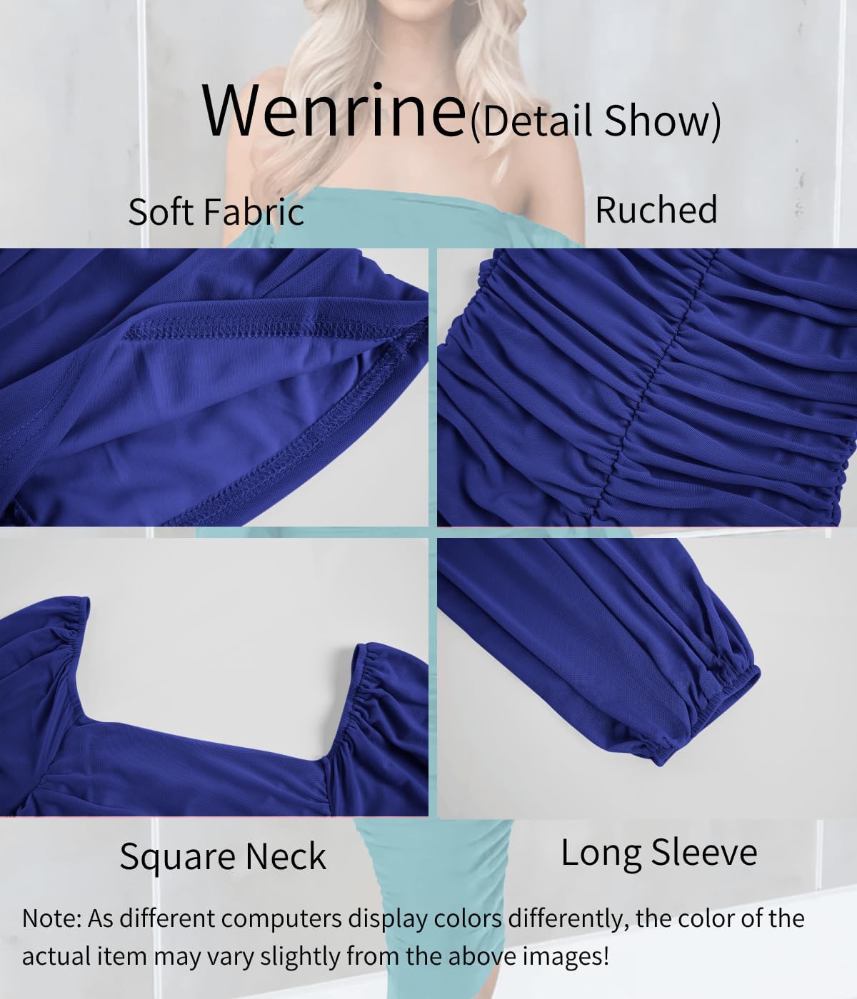 Design – Lantern Lengthy Sleeve, Mesh, Sq. Neck or Off Shoulder, Ruched, Slim Match, Stable Shade, Midi Size.