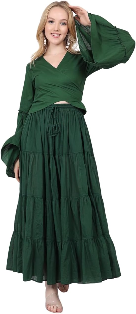 Wevez Maxi Skirts for Girls Ruffle Hem A Line Elastic Waist Lengthy Skirts