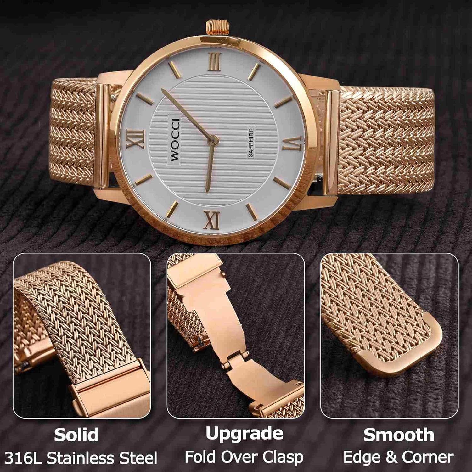 Shade Choices WOCCI Metal Watch Strap 316L Stainless Steel Band Deployant Clasp 18mm 20mm 22mm 24mmWOCCI Metal Watch Strap 316L Stainless Steel Band Deployant Clasp 18mm 20mm 22mm 24mm Black WOCCI Metal Watch Strap 316L Stainless Steel Band Deployant Clasp 18mm 20mm 22mm 24mmWOCCI Metal Watch Strap 316L Stainless Steel Band Deployant Clasp 18mm 20mm 22mm 24mm Gold WOCCI Metal Watch Strap 316L Stainless Steel Band Deployant Clasp 18mm 20mm 22mm 24mmWOCCI Metal Watch Strap 316L Stainless Steel Band Deployant Clasp 18mm 20mm 22mm 24mm Rose Gold WOCCI Metal Watch Strap 316L Stainless Steel Band Deployant Clasp 18mm 20mm 22mm 24mmWOCCI Metal Watch Strap 316L Stainless Steel Band Deployant Clasp 18mm 20mm 22mm 24mm Silver